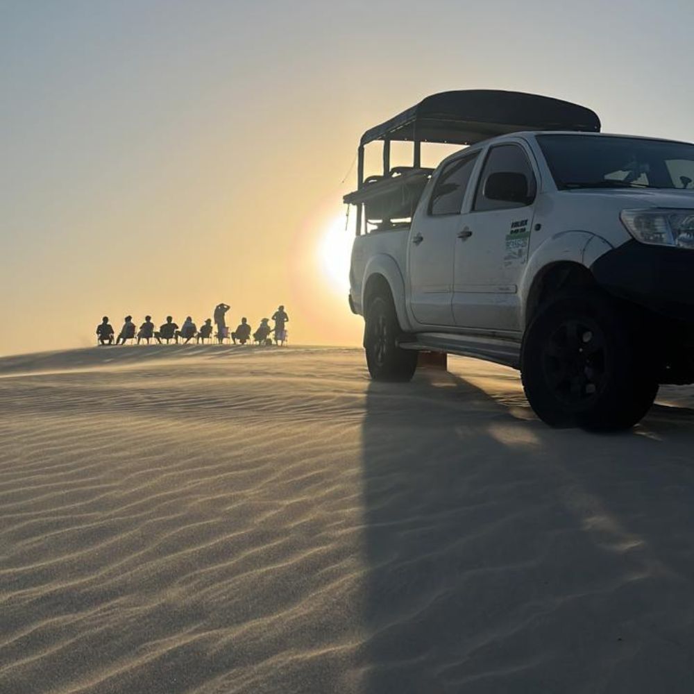 Em transporte 4×4, seguimos trilhas, que dará acesso a lagoas cristalinas em meio ao parque dos lençóis maranhense ( lagoa da esmeralda , da ilha e outras ) logo após parada para banho, seguimos ao vilarejo Canto do Atins, para almoço ( não incluso ) após o almoço seguimos para o povoado